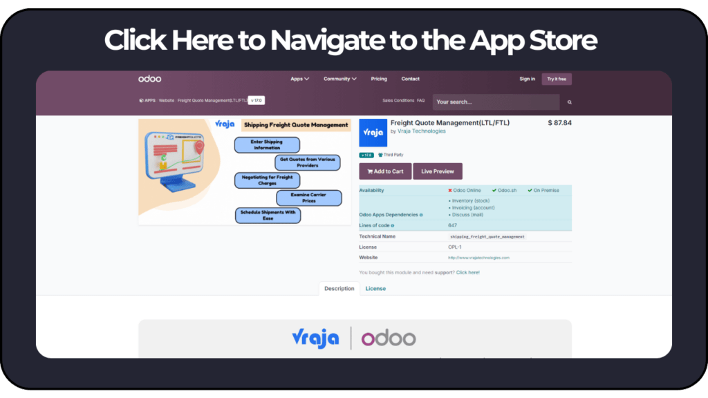 Effective transportation is an essential component of every manufacturing, logistics, or wholesale organization. But handling the complexity of freight shipping—like scheduling shipments, comparing prices, and guaranteeing dependability—can be quite difficult. The Freight Quote App for Odoo is a creative solution created by Vraja Technologies. With the help of this effective application, companies can easily handle their logistics by getting freight rates, evaluating career options, and scheduling shipments.