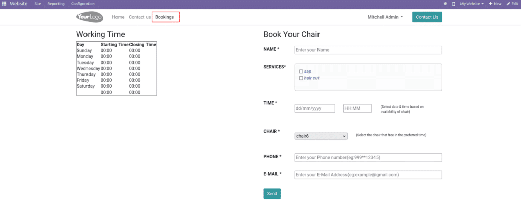 Odoo has a feature-rich scheduling module that makes it easy for salons to effectively handle appointments.