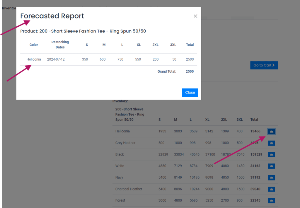 Customers can view the availability status and anticipated resupply dates of each variant by accessing a website that displays a forecast report broken down by product variant. This lessens uncertainty and aids in purchase planning. Features consist of: