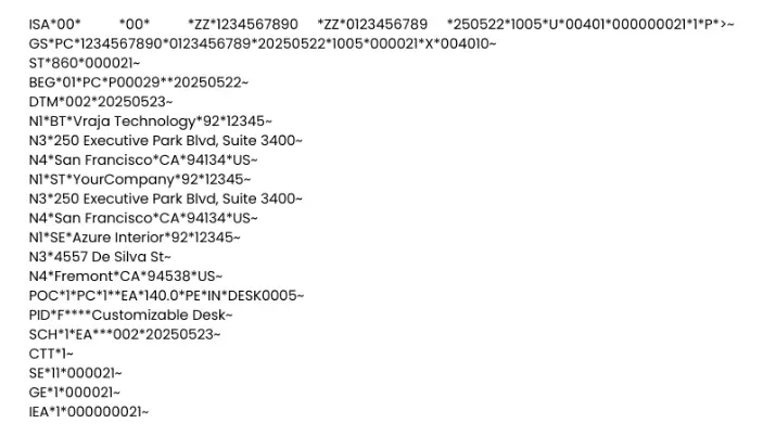 This document is formatted using the ANSI X12 standard, maintained by the American National Standards Institute (ANSI). EDI 860 streamlines buyer-supplier communication, improves order accuracy, and keeps both parties aligned throughout the procurement process.