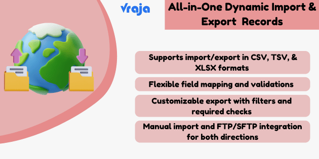 Seamlessly sync data between Odoo and FTP/SFTP servers with automated import and export features. Supports CSV, TSV, and XLSX files with full control over file structure, mapping, and automation.