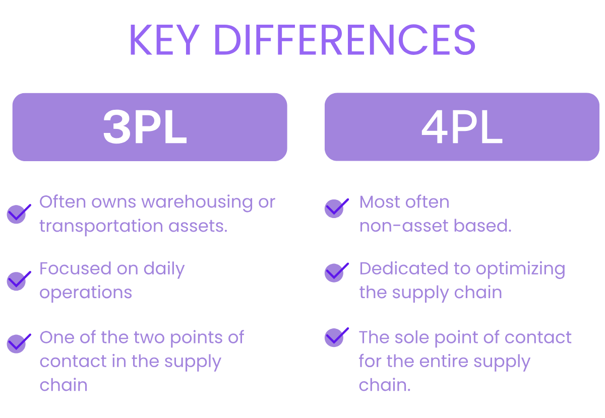 Fourth-Party Logistics (4PL) goes beyond 3PL by handling the whole supply chain for the client. A 4PL provider serves as a single point of contact between the client and several logistics suppliers, managing and organizing all parts of the supply chain from start to finish.